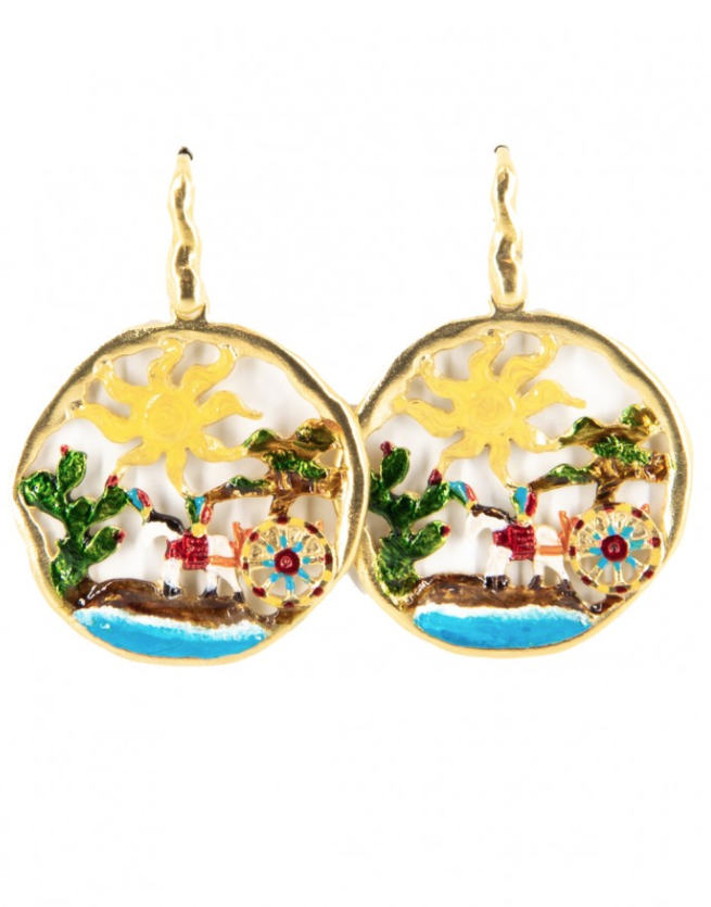 Orecchini Paesaggio Siciliano in Argento 925 Dorato Smaltati a Mano