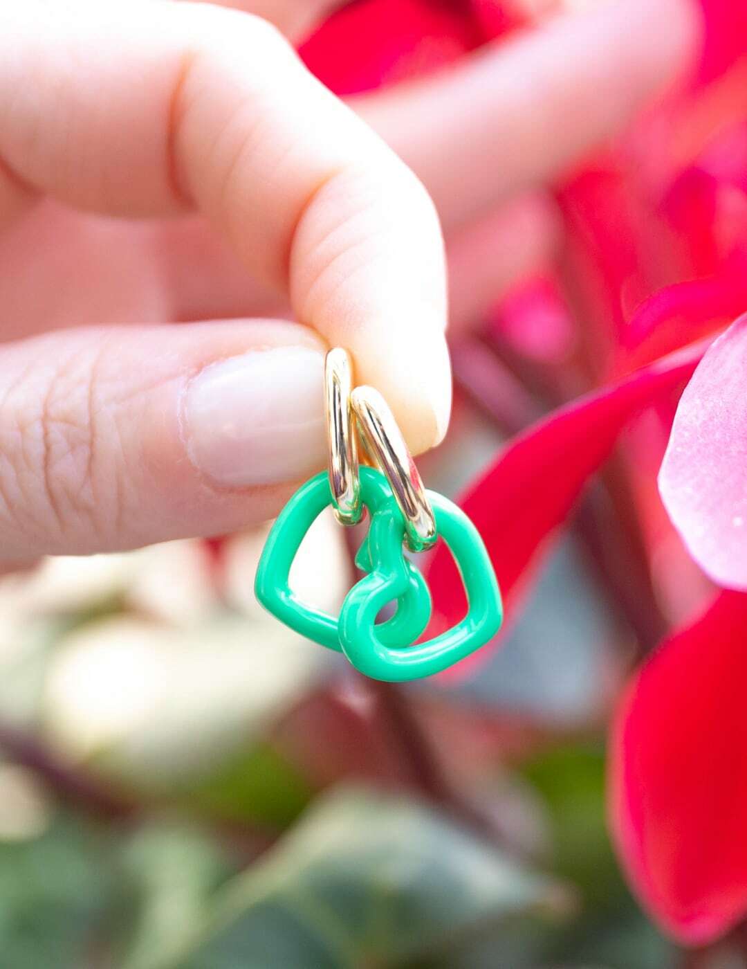 Orecchini dal design raffinato e romantico, caratterizzati da una forma ovale che racchiude un piccolo cuore smaltato per un tocco delicato e moderno.