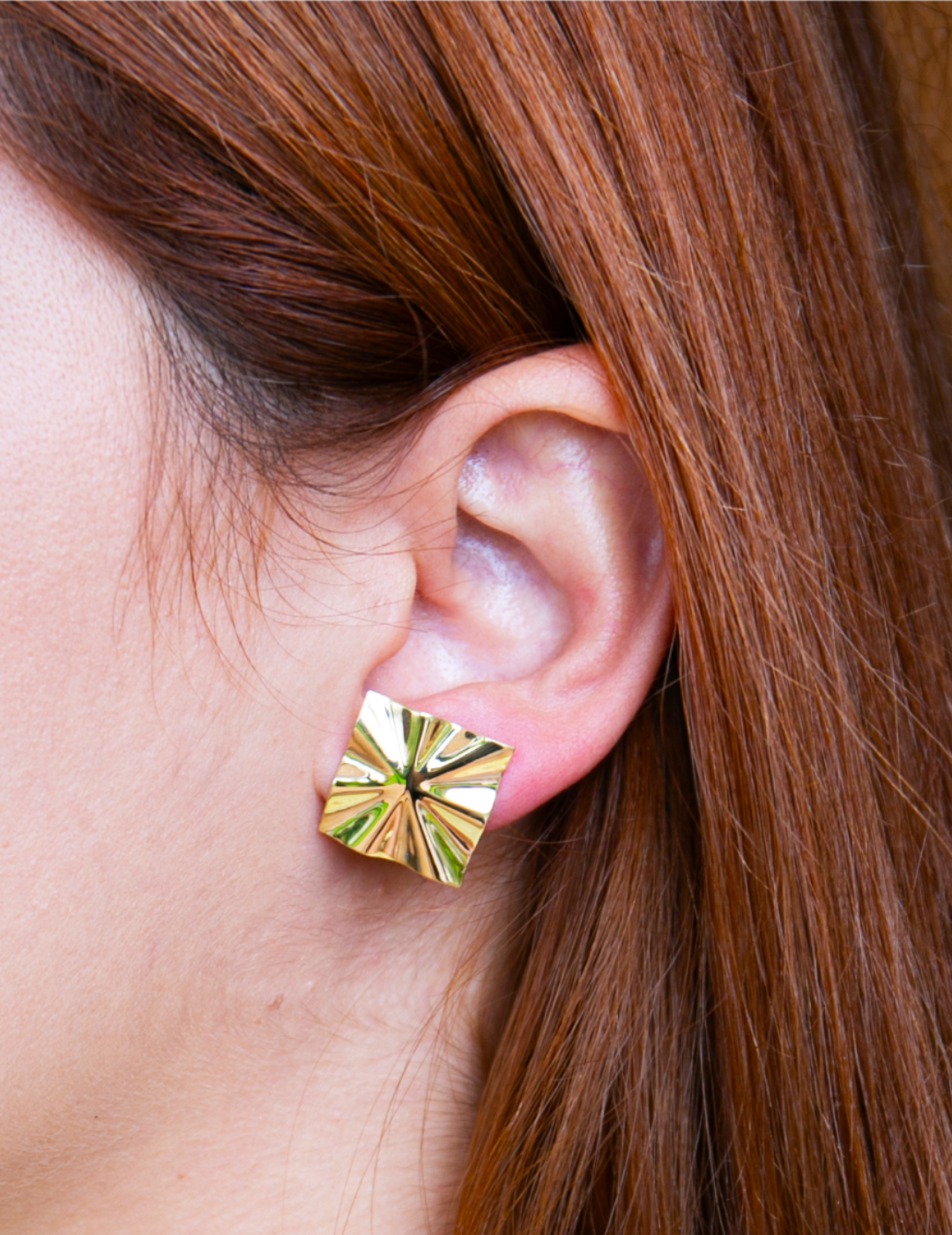 Raffinati e scenografici, gli Orecchini Quadrati Plissé Dorati aggiungono luce e carattere ad ogni look.